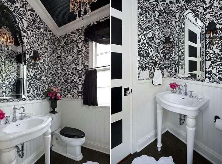 Черно-белая ванная комната подойдёт практически для любого стиля жилища. Отлично впишется в современные апартаменты в стиле минимализма, а также в интригующее ретро, английский или гламурный стили. Аксессуары здесь играют огромную роль. Например, золотые смесители для ванной олицетворяют гламурный стиль, стилизованные ножки для ванн подходят под английский стиль, а большое зеркало в раме — под ретро.