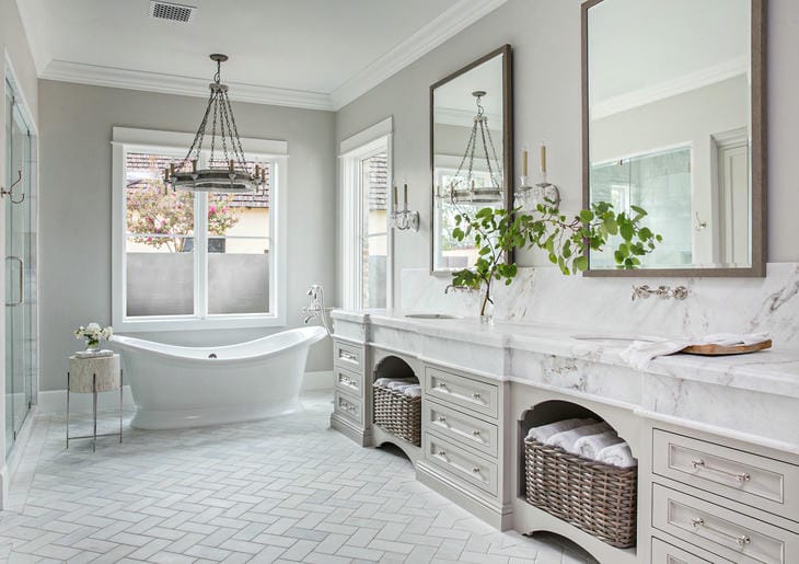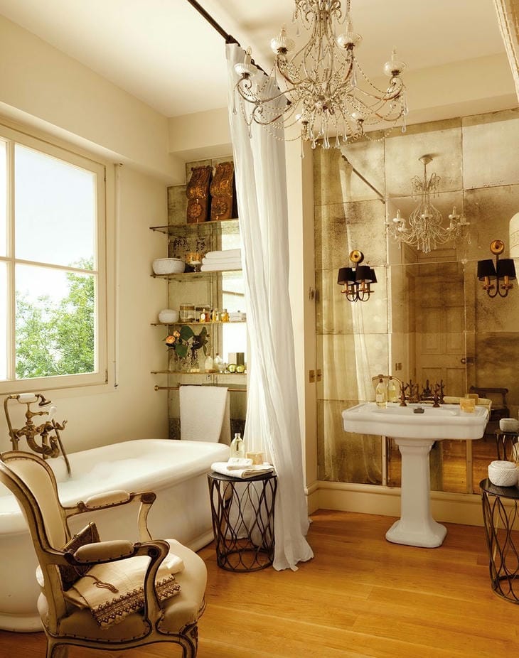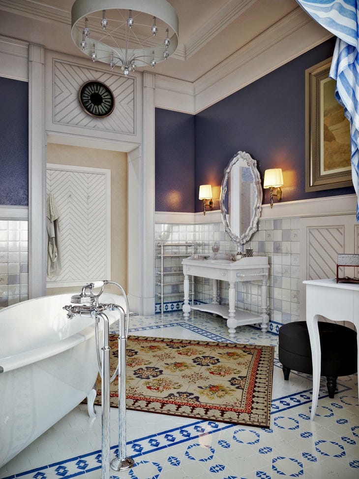 Ванная комната в парижском стиле — интересная альтернатива популярным современным и индустриальным решениям.