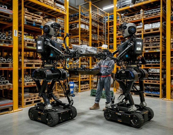 - Роботы-укладчики (Boston Dynamics, Amazon Robotics) сортируют трубы и фитинги.